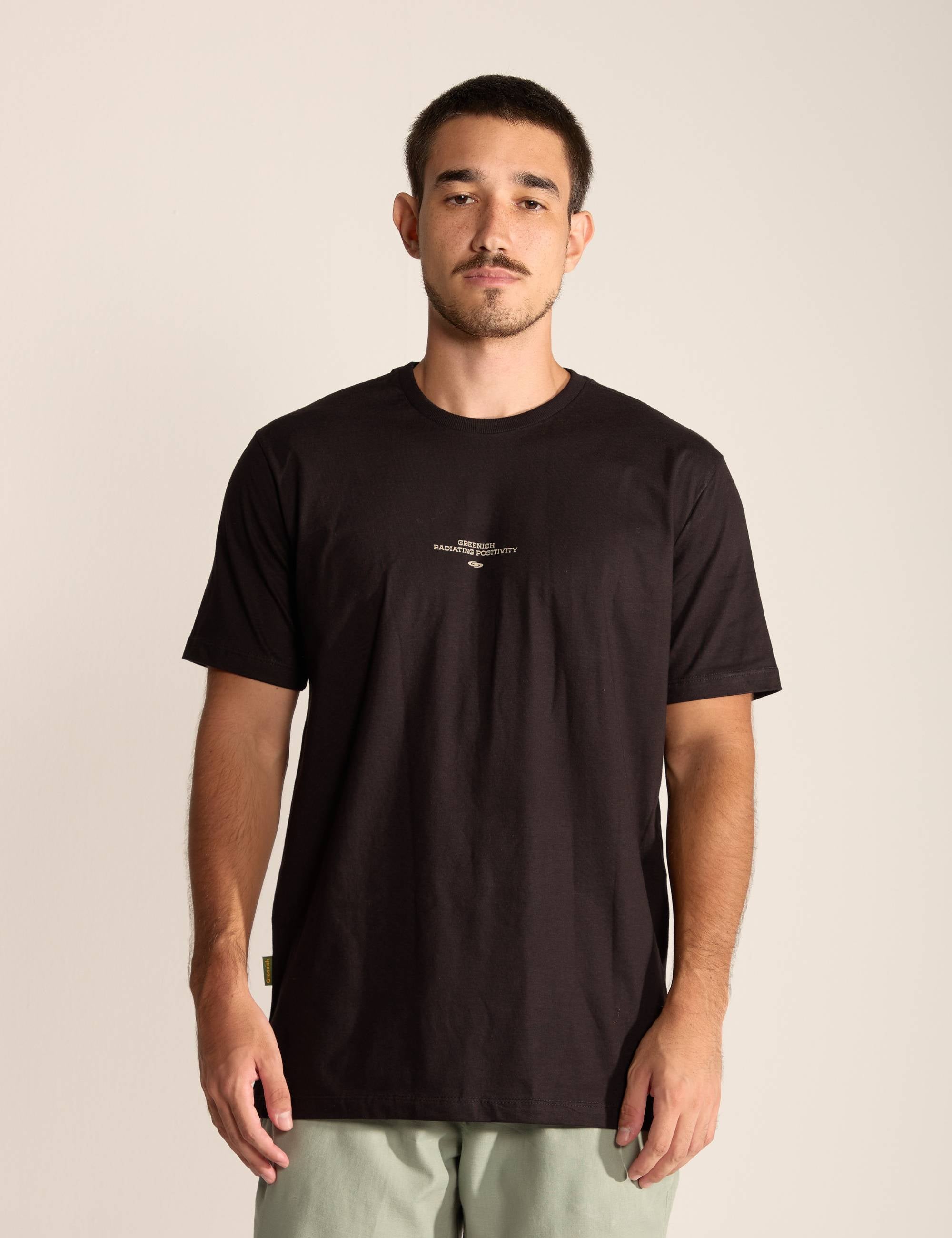 A Camiseta Radiating Positivity traz estampa gráfica nas costas que simboliza movimento, equilíbrio e boas vibrações. Feita em malha 100% algodão, com modelagem clássica e gola em ribana, ela é sinônimo de conforto e autenticidade.