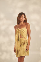 Confeccionada em viscose com toque macio e caimento fluido, modelagem que valoriza a silhueta e bainha de lenço que reforça o movimento leve da peça.