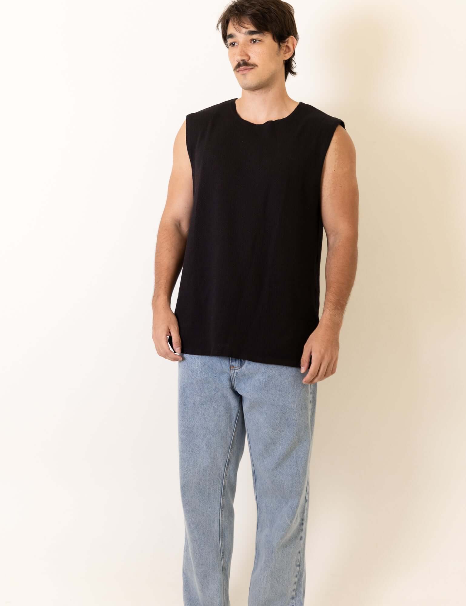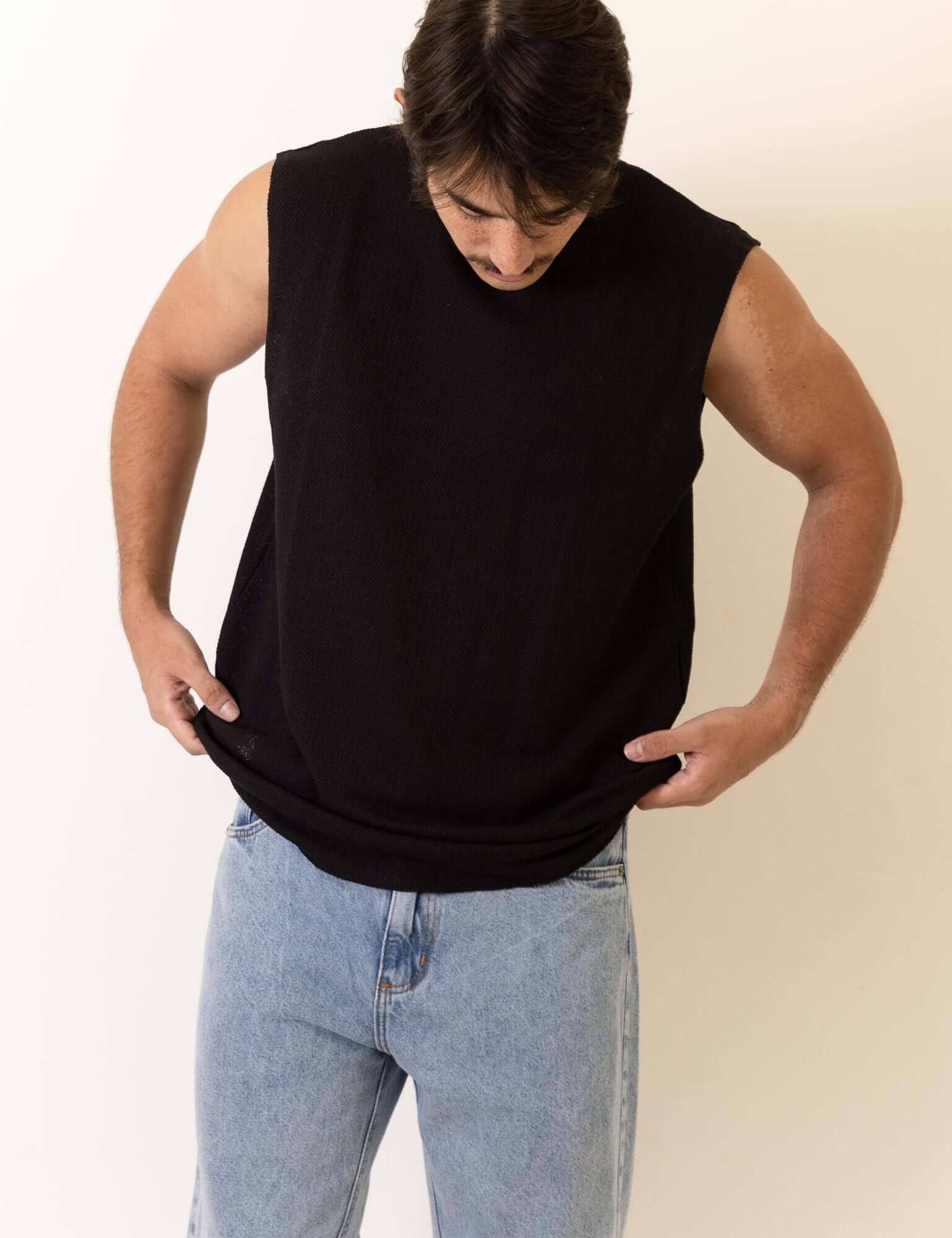A Regata Maré tem modelagem ampla, acabamento a fio com rebater nas cavas e decote, e tecido com toque encorpado e confortável. Detalhe da etiqueta lateral clip traz identidade com sutileza.