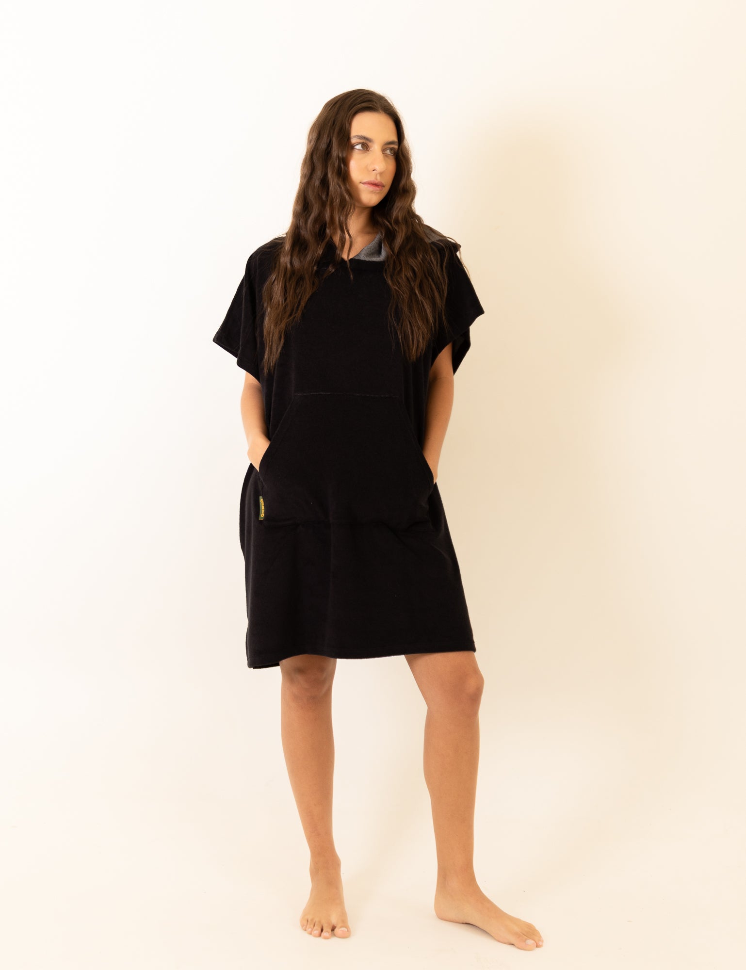 O Poncho é o maior agilizo da sua vida e chegou para ser o seu melhor amigo na praia: te ajuda a se aquecer, te dá privacidade para se trocar e te protege do frio nos dias de praticar seu esporte aquático favorito. Com comprimento acima do joelho, conta com bolsos frontais modelo canguru, além de ser fabricado em tecido atoalhado com alta absorção e secagem super rápida. Oferece uma experiência de conforto tão incrível quanto as peças Greenish voltadas para alta performance dentro d'água.