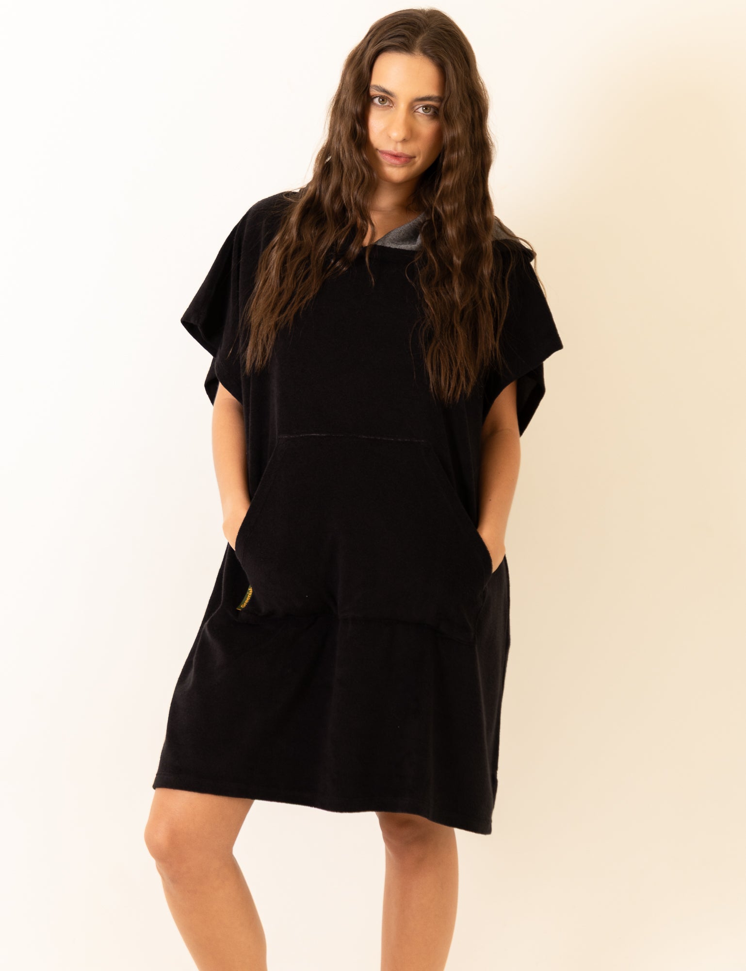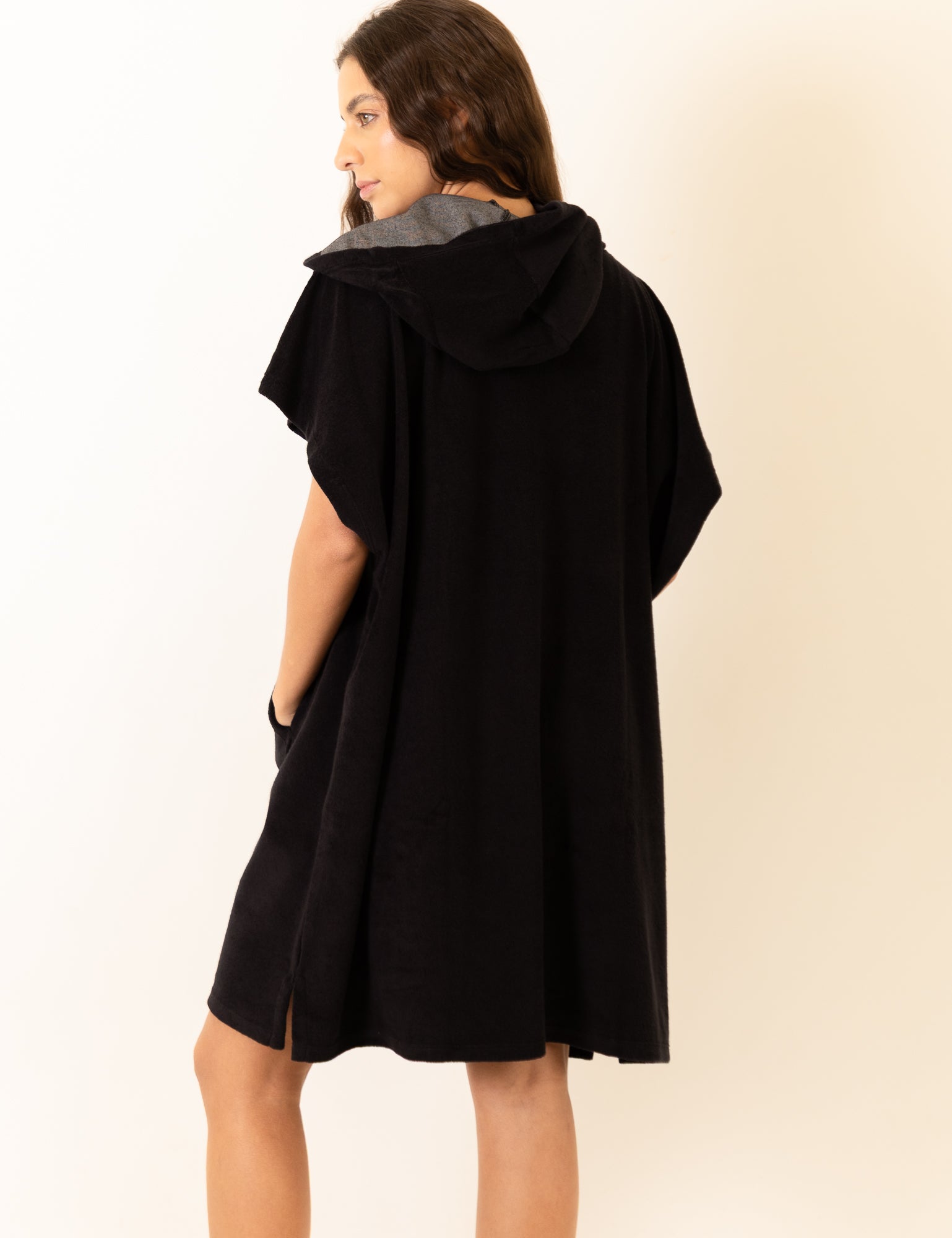 Poncho Curto Atoalhado Com Bolso - Preto