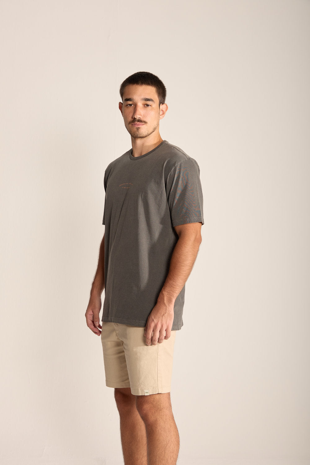 Feita em 100% algodão e com processo de estonagem que garante toque macio e visual levemente desgastado, essa peça é puro lifestyle: vai bem no dia a dia, em viagens e encontros ao ar livre. A gola em ribana e os ombros com reforço interno garantem durabilidade mesmo com uso intenso — do asfalto à areia.
