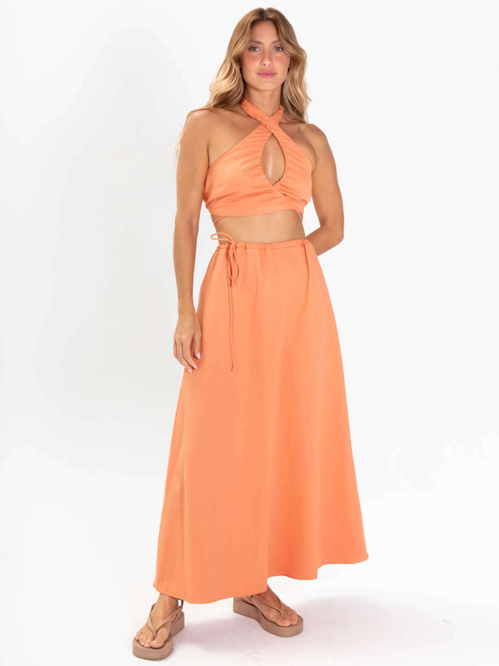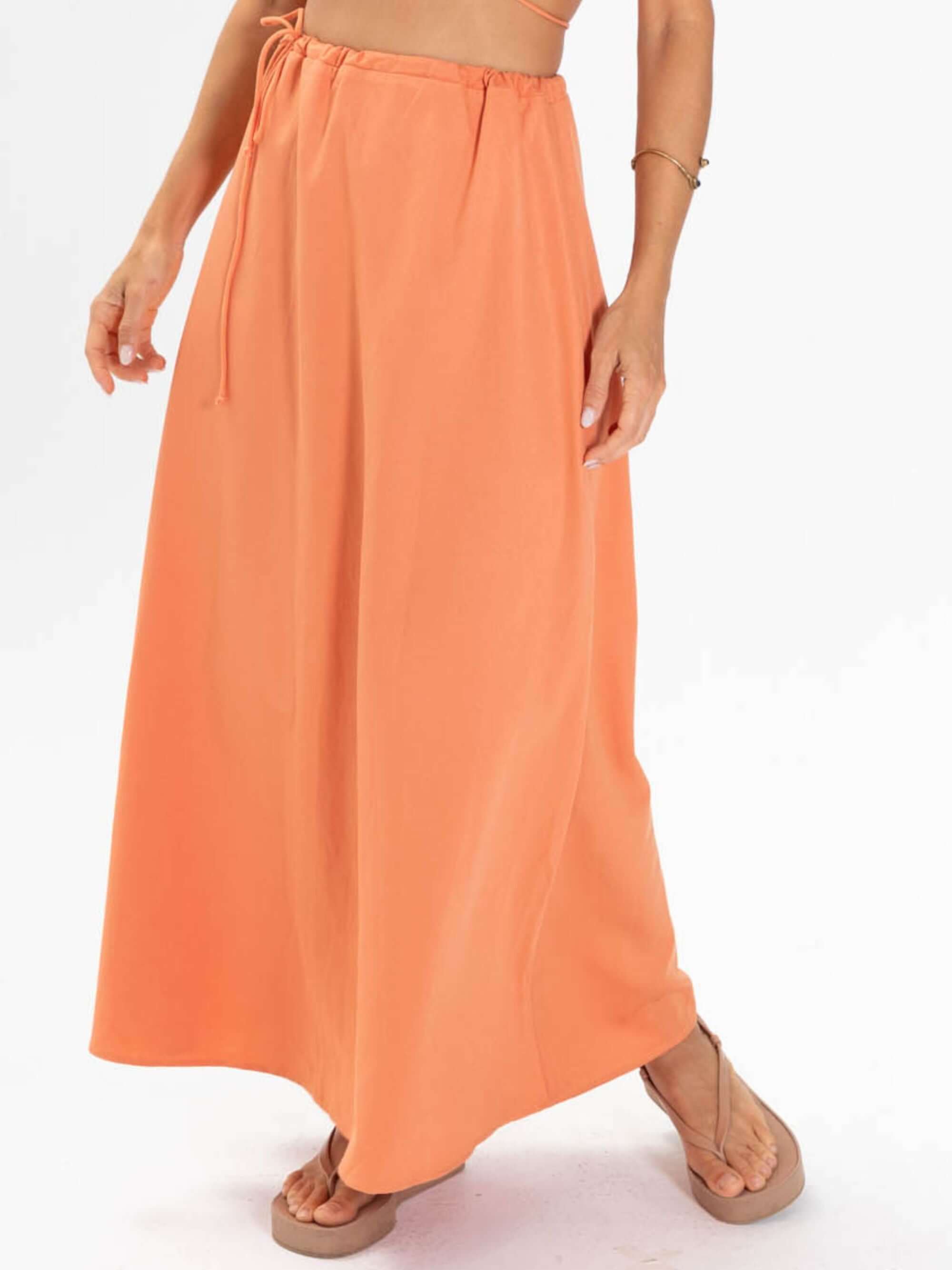 Elian é a saia midi que você procurava! Tem caimento soltinho cós regulável: sua amarração lateral em elástico dá um toque único ao look e faz dela super original. É fabricada em tecido levinho e respirável, unindo charme e modernidade. O combo ideal para todos os rolês.