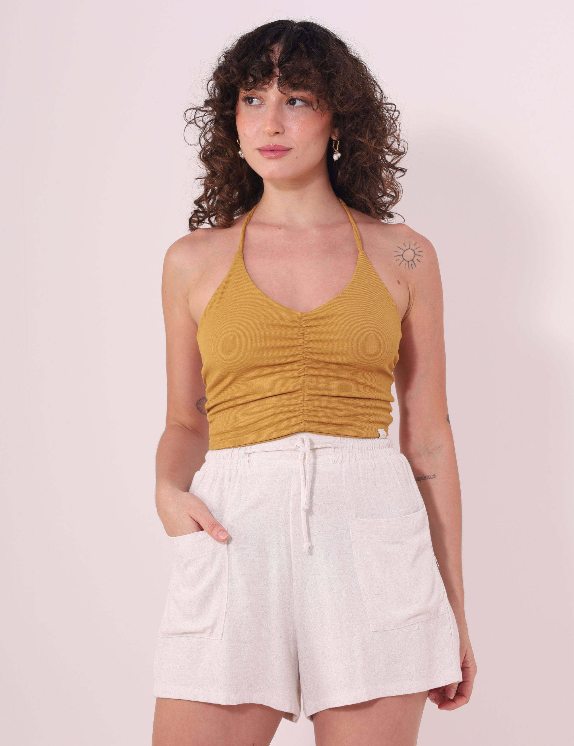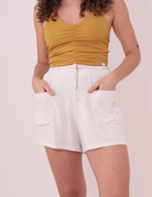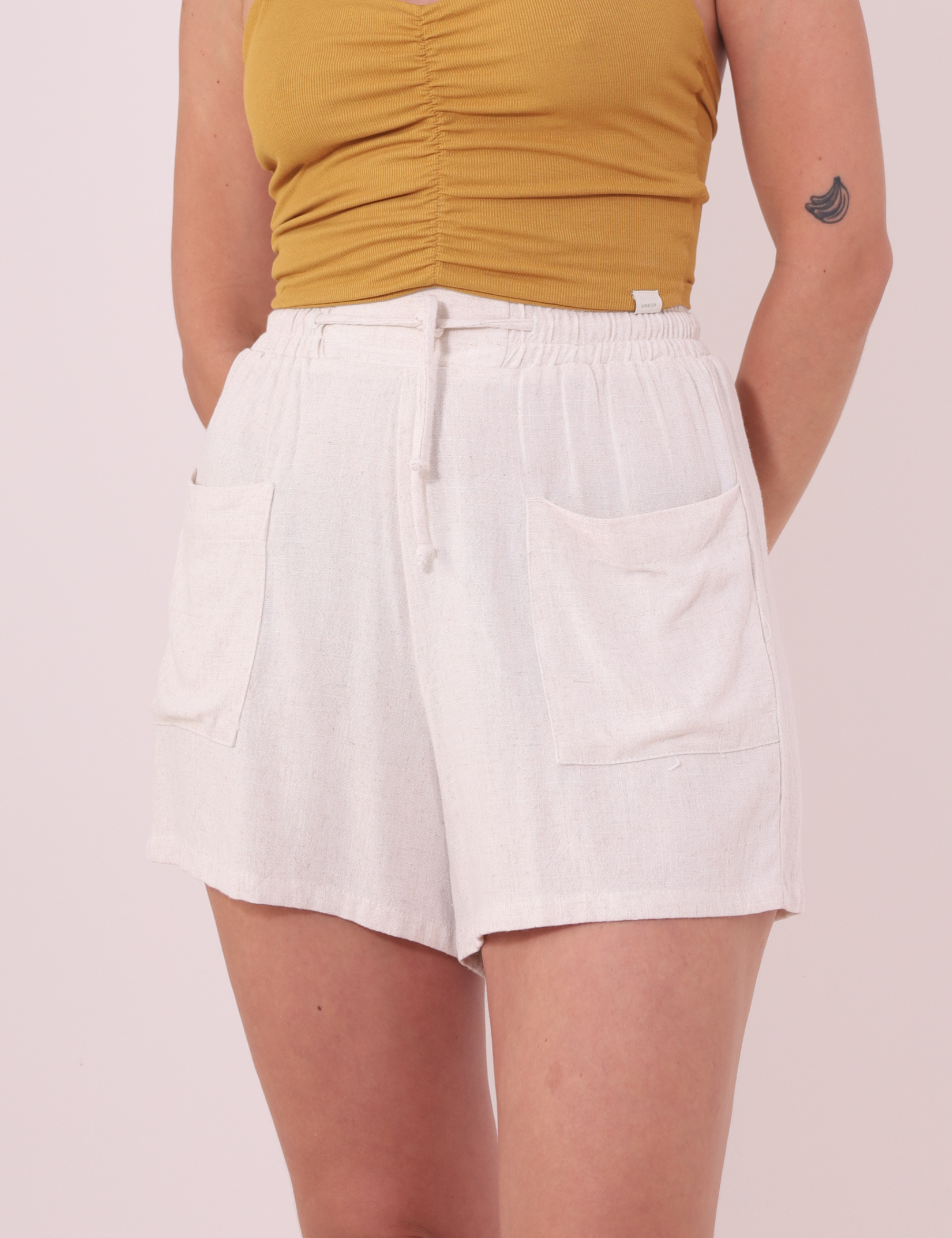Com tecido misto de linho e viscose, o Short Casual Ana chega com seu charme particular! Tem cós em elástico, tornando-o mega confortável! Possui bolso chapado e cardaço rotulê ajustável, fazendo dele um short elegante e versátil que possibilita infinitas composições de look.