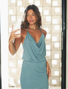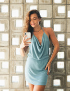 O Vestido Curto Carina é confeccionado em Malha Feel Soft High (98% viscose e 2% elastano), com toque extremamente macio e caimento fluido; possui modelagem soltinha com forro do próprio tecido, decote com amarração em viés rolotê, cintura com elástico embutido que valoriza a silhueta e saia com leve volume que traz movimento à peça.