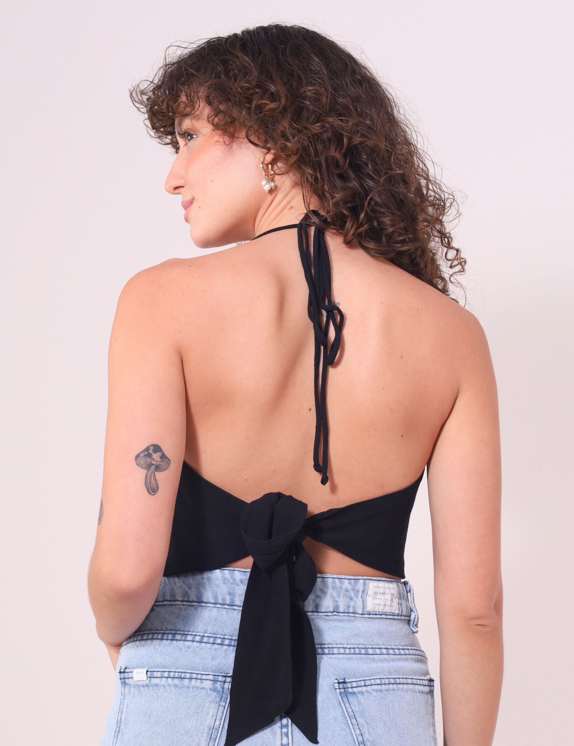 A Blusa Jennie é feita em visco linen, com alças finas e amarração nas costas, criando um visual leve, fresco e cheio de atitude. A frente e as costas duplas garantem mais estrutura e conforto ao vestir.