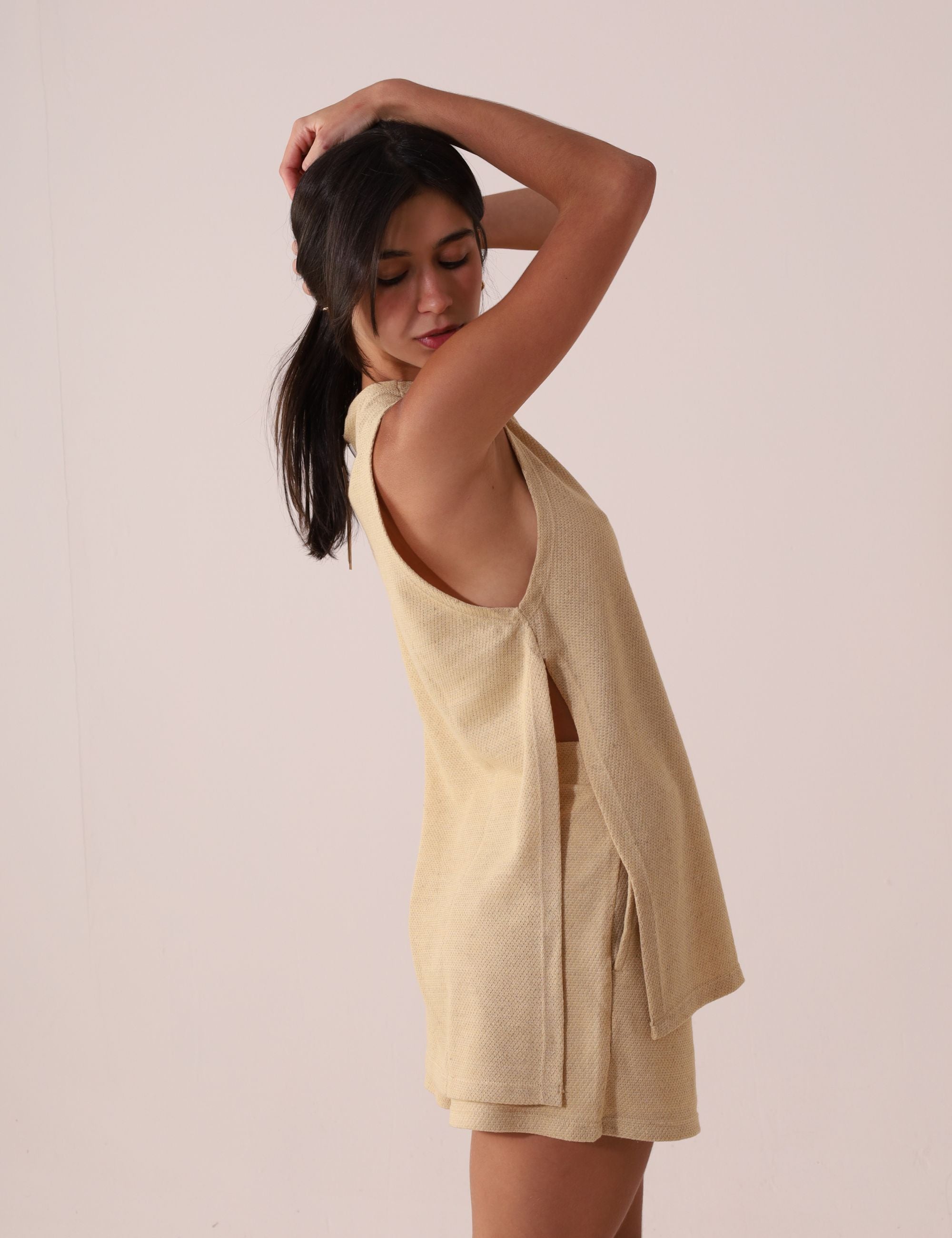 A Regata Future é perfeita para composições descomplicadas, com estilo leve e natural. Use com shorts de algodão, saias de tramas naturais ou peças de alfaiataria leve para criar visuais que transitam entre o casual e o sofisticado, sempre com autenticidade. Ideal para dias de calor, pós-praia ou camadas sobre tops e biquínis.